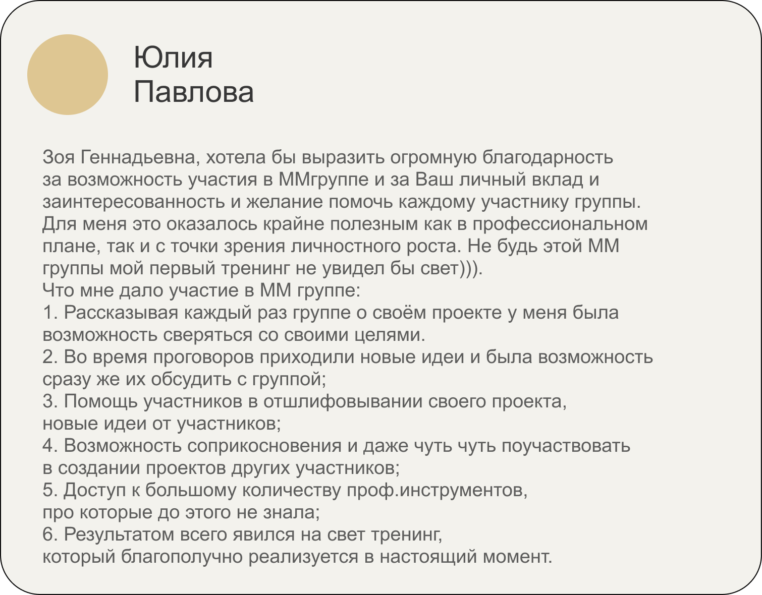 Работаю с запросами: · Работа с крупными целями, составление плана и организация его исполнения. · Формирование уверенности и устойчивость в движении. · Определение препятствий и выявление возможностей · Подготовка к сложным переговорам